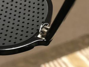 黒いプラスチックの、見かけはサングラスだが、レンズにあたる部分に小さな穴が空いている代物。