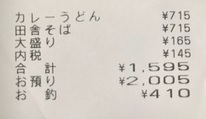 私はカレーうどん大盛り、嫁は田舎そばのあったかいの、を注文。
