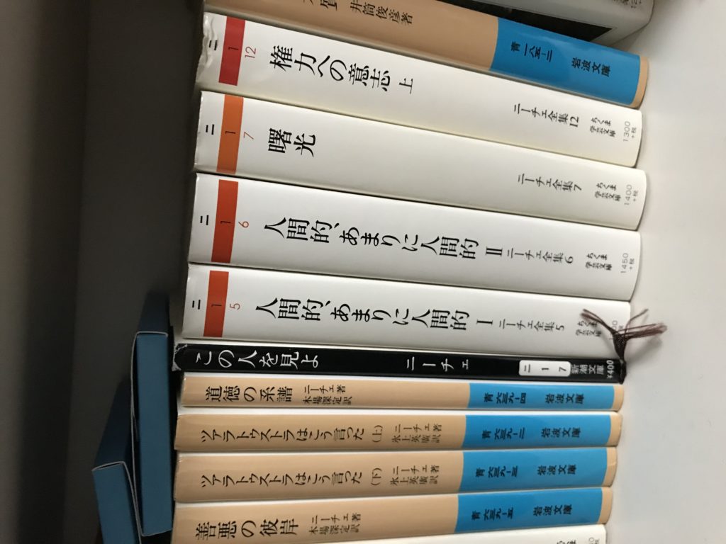 ニーチェは、ここ数年前くらいに「超訳ニーチェ」といった本でにわかに知られたけど、いつだったか、たまたま本屋で見かけて買った本で興味を持ったので、結構読んだ。