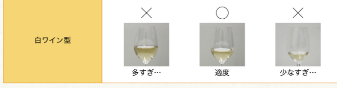 おおよそ、グラスの4分の1くらいに、赤や白のワインが注がれている写真である。