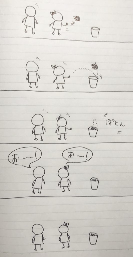 あるとき、私が落ちていたゴミを拾ってゴミ箱に捨てたときだったか、