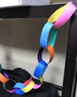 なににせよ、折り紙を切って、繋げて、貼り付けて、飾ってくれたわけだ。