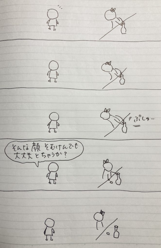 私「あぁ、寒そうに丸まってるんやったら、水から上がったらええのに…と思うて」