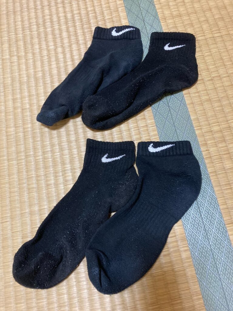 ナイキのマークの位置が、やや異なる黒のくつ下。