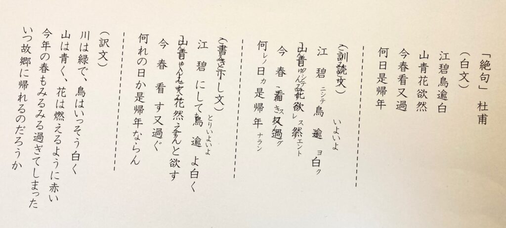 先日「こんなんになってしもうてん…」と見せてくれたのは、杜甫の「絶句」とのこと。